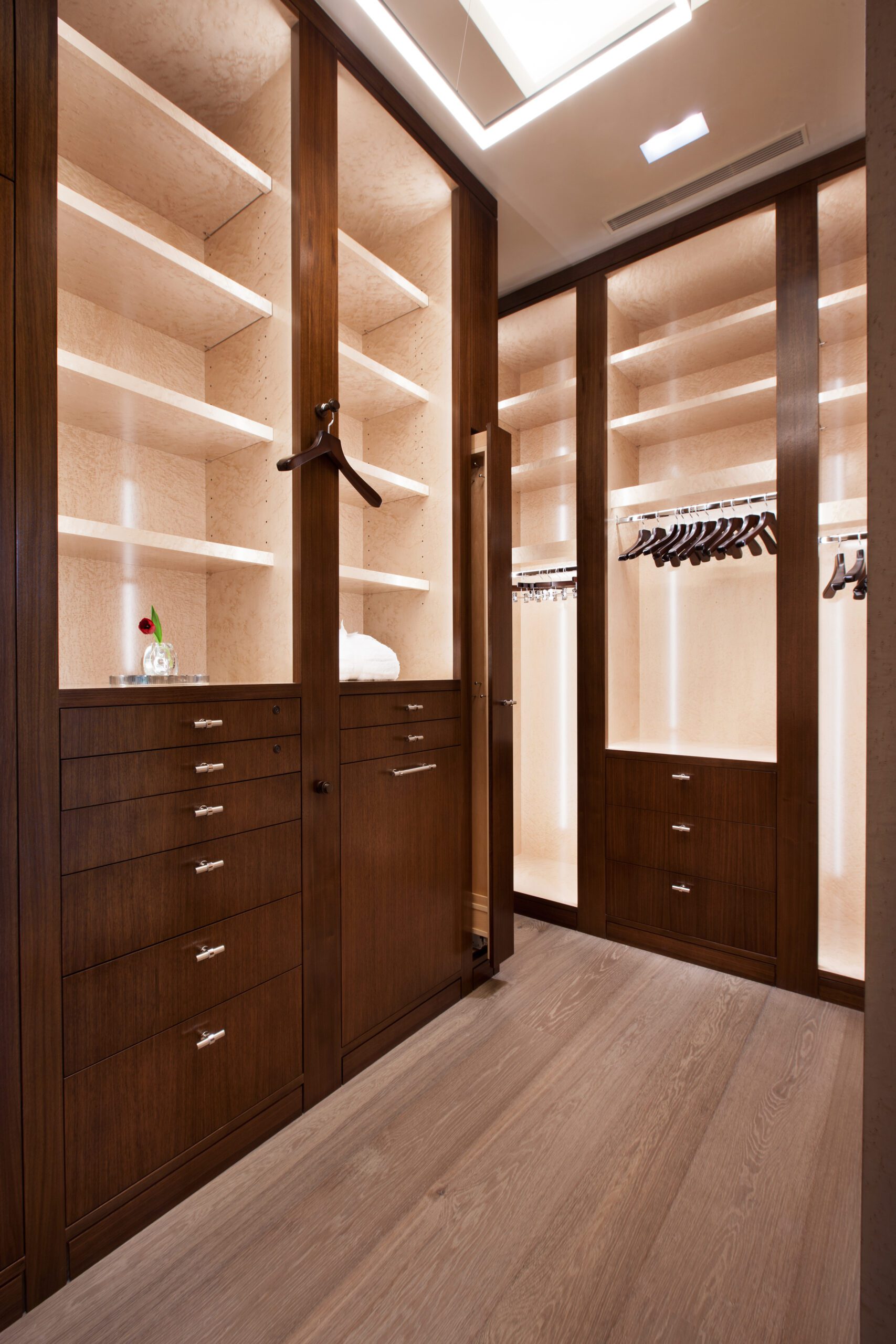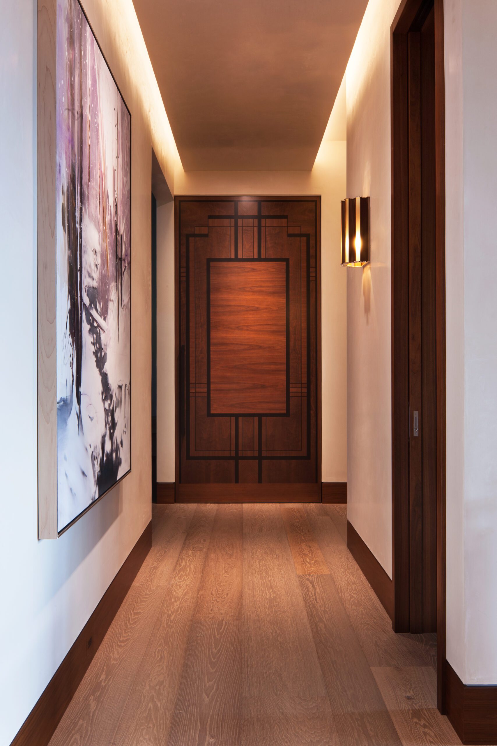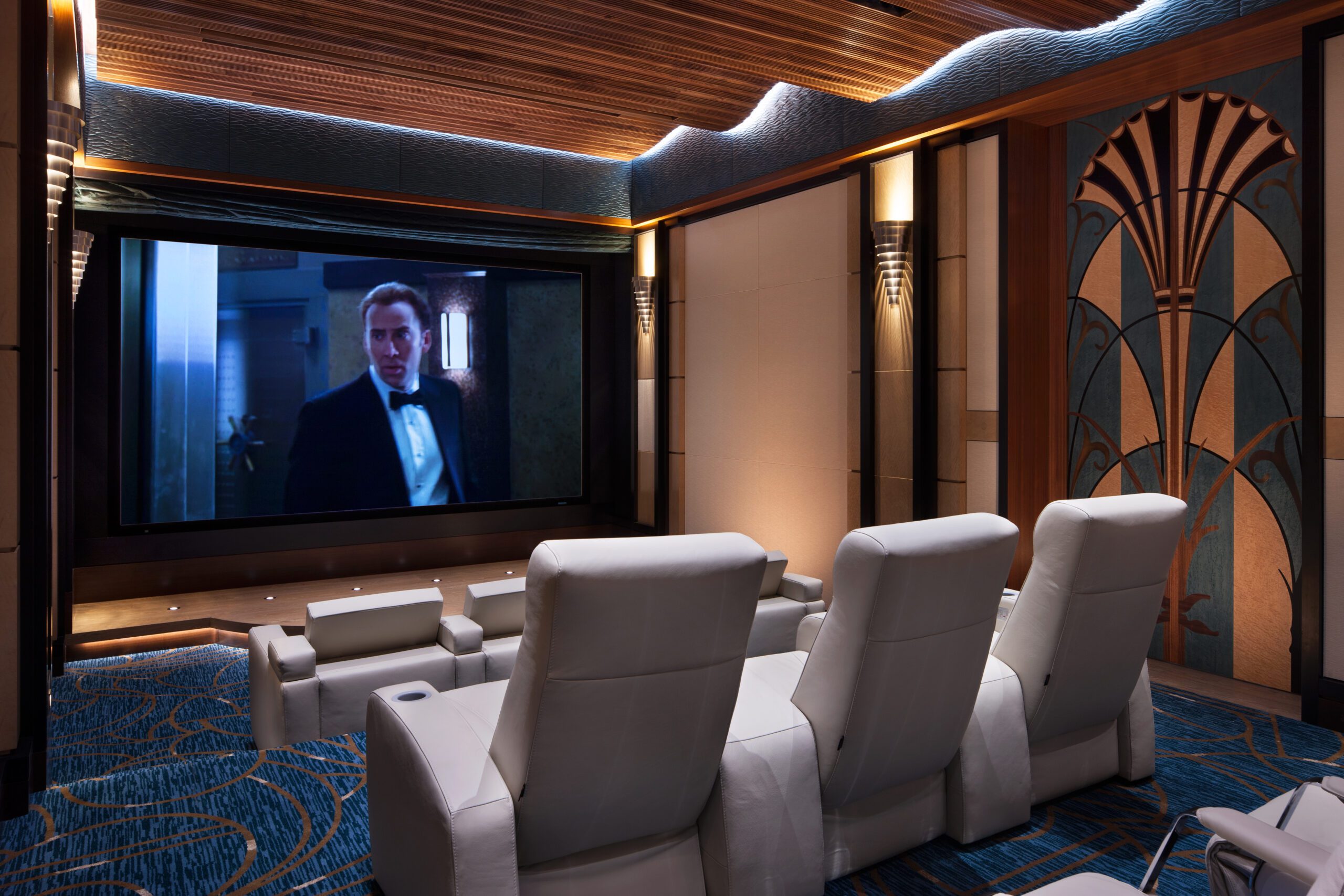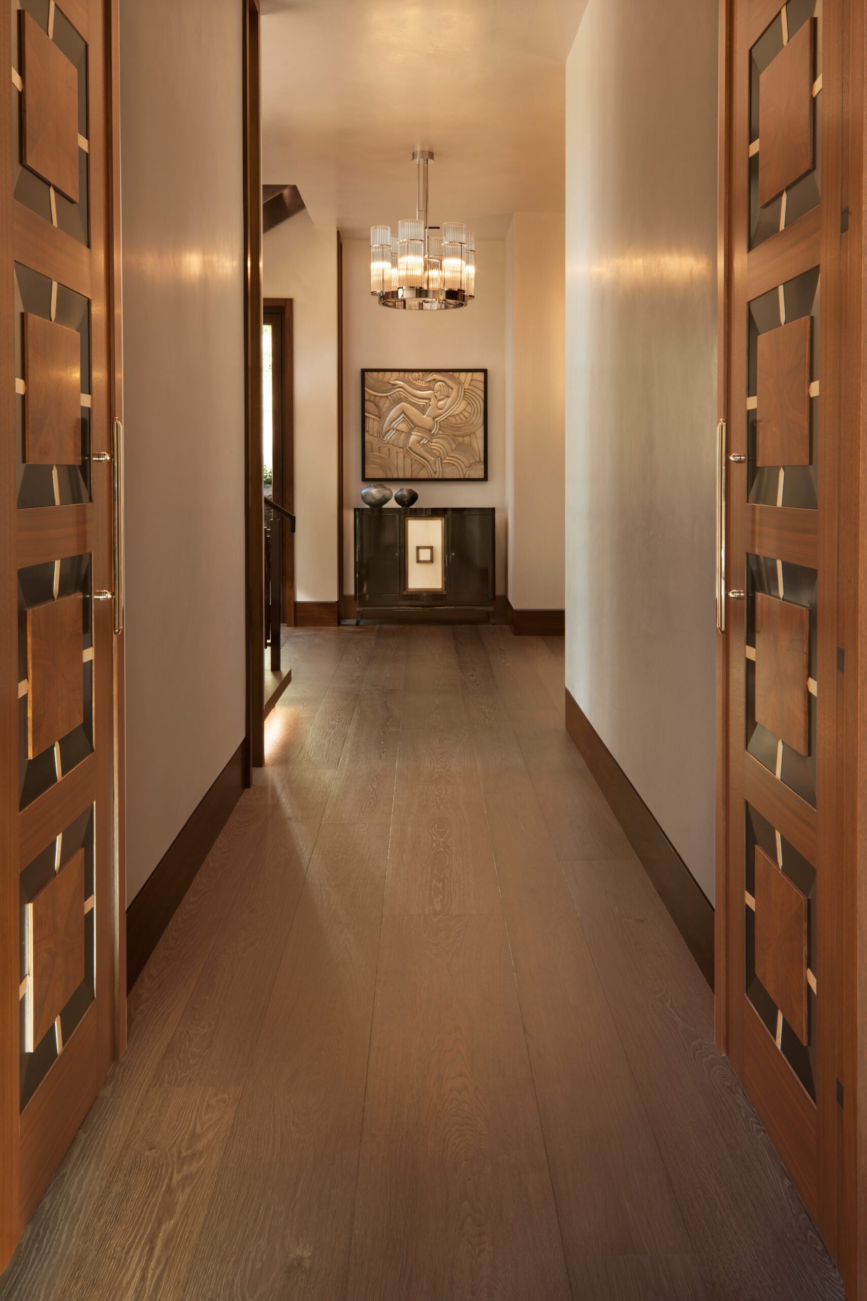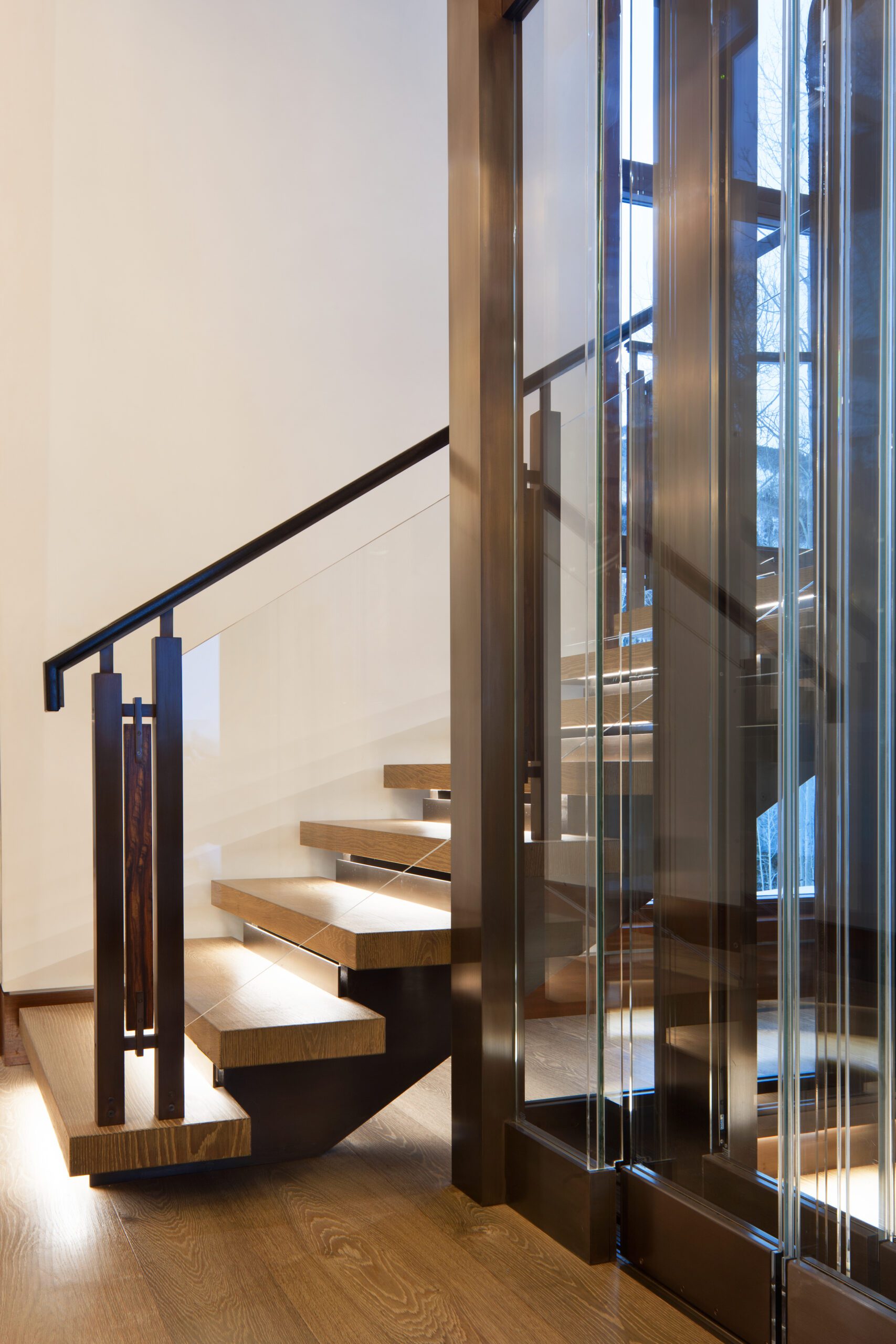 Project Information: The 15,000 SF main residence is built into the South Aspen hillside. It boasts exceptional views of Independence Pass and the backside of Aspen Mountain. The adjoining guest lot is parklike with meandering streams and trout-stocked ponds. This art deco-inspired modern retreat was designed by Charles Cunniffe of Aspen, CO. The exterior finishes include solid walnut windows and doors cladded in true bronze. The rainscreen consists of a composite material made from rice husks, and the stone veneer is dimensionally-cut Oklahoma brown fieldstone. The wood-like swirled sandstone that carefully dresses the expansive entry is cut from large boulders sourced out of the Ozark Mountains. The interior finishes include patinaed stainless steel accents throughout with wide plank wire-brushed and waxed oak flooring. There are 36 different wood species throughout including rare East Indian rosewood, cathedral-cut walnut, silver-dyed lacewood, ribbon sapele, palladium leaf, ebony, and even white walnut. The two custom stainless and curved glass elevators are the show pieces of the residence, each traveling a single floor via a stainless steel hydraulic piston that comes out of the ground. The fireplaces are 350,000 BTU custom stainless burners with traditional masonry flue assemblies. The landscape includes over an acre of fish-stocked ponds and meandering streams.